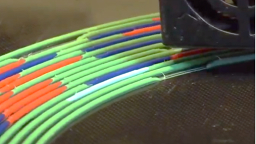 By controlling the movement of the print header, the FDM alternately weaves the stringing fibers across